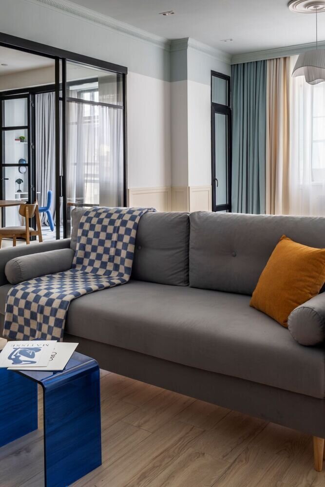 Микс фактур и сочных красок в двушке 93 м²Дизайн
