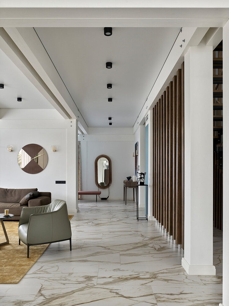 Фотография: Гостиная в стиле Современный, Проект дня, Дача, Подмосковье, Блочный дом, 4 и больше, Более 90 метров, Марина Жеренко – фото на INMYROOM